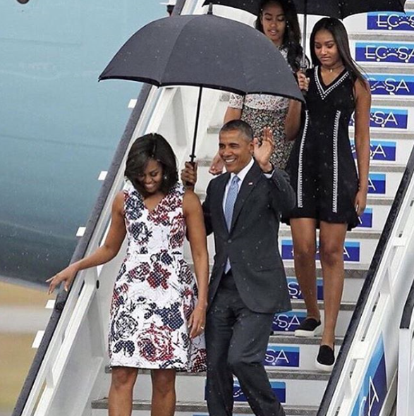 Obama traveled with his wife, the first lady Michelle Obama, her mother and their daughters, Sasha and Malia, the first family first met with staff of the newly reopened U.S. Embassy at a Havana hotel.